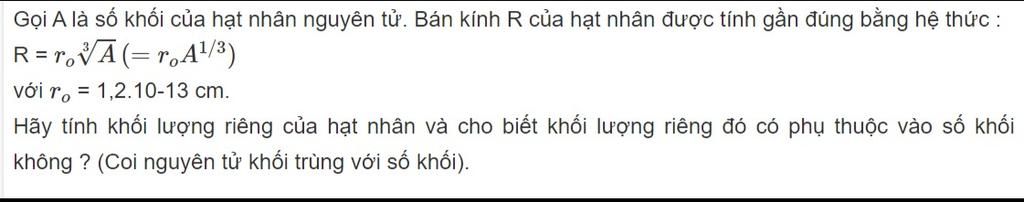 Vậy khối lượng riêng hạt nhân không phụ thuộc vào số khối.