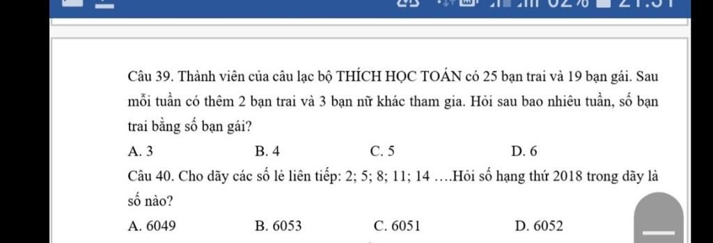 Mỗi tuần , số bạn gái tăng hơn bạn trai là :