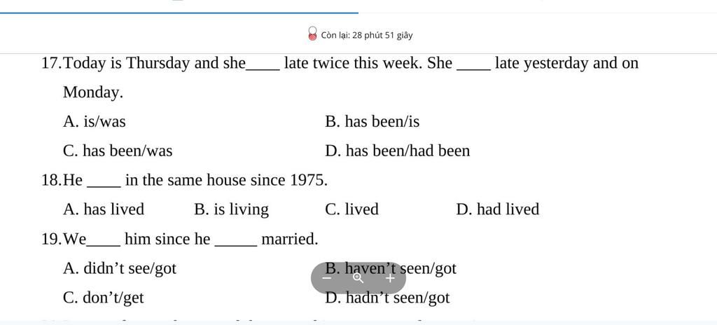 18 A→ Sự việc đã diễn ra trong quá khứ và vẫn đang tiếp tục ở hiện tại nên chia hiện tại hoàn thành