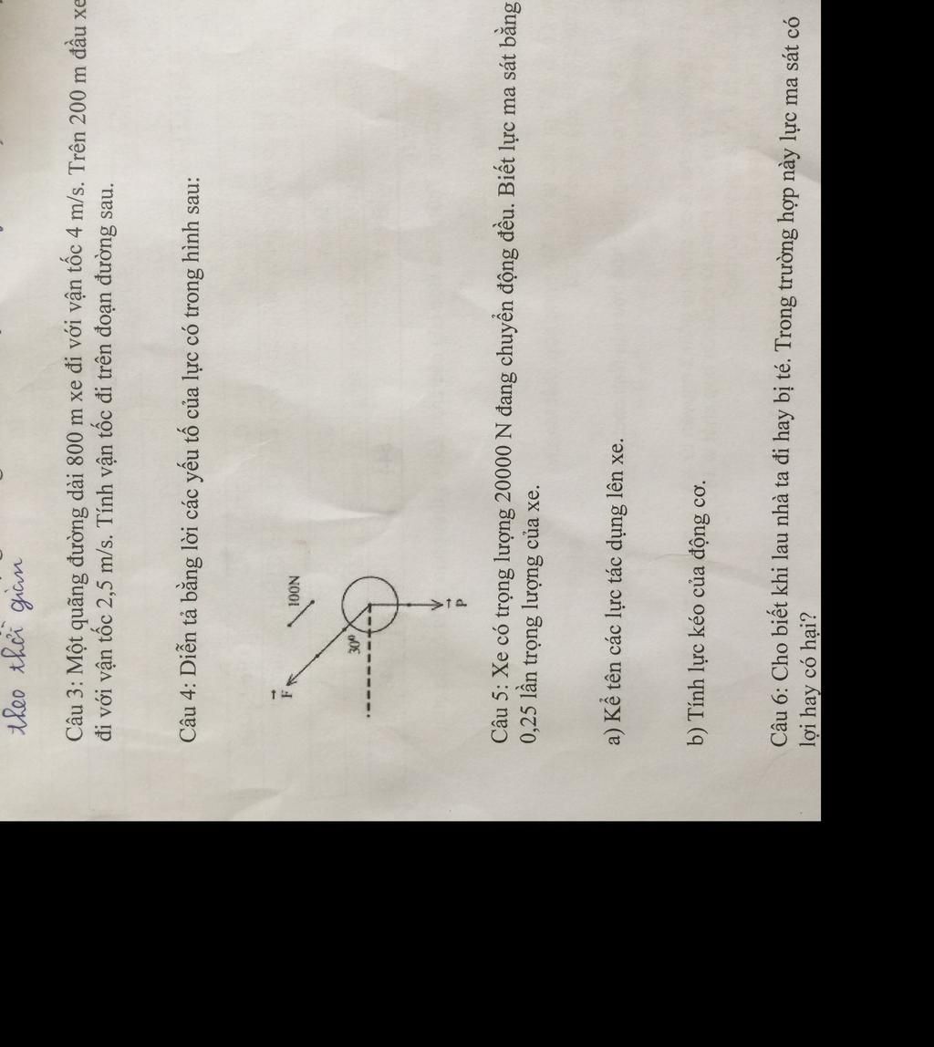 $a,$ Các lực tác dụng lên xe : Trọng lực $P$, lực ma sát $F_{ms}$, lực kéo của động cơ $F_{k}$, lực dỡ của mặt đường $Q$