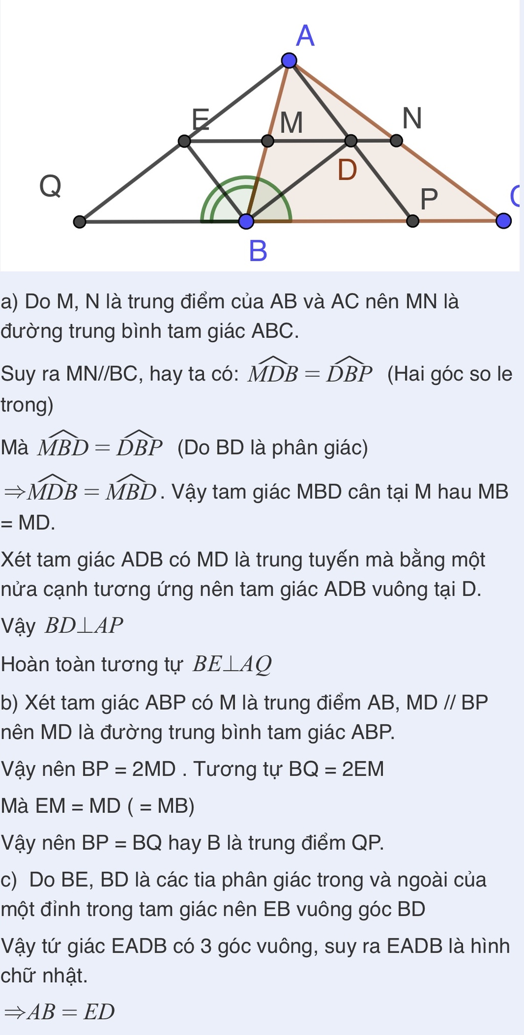 BD vuông góc với AD thì ta đi chứng minh tam giác ABP cân tại B.