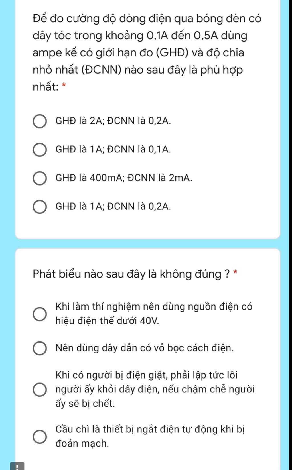 Nên dùng Ampe kế có GHĐ là 1A, ĐCNN là 0,1A