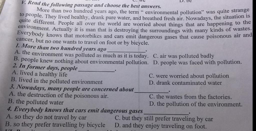 1. b. people knew nothing about environmental pollution(mọi người không biết gì về ô nhiễm môi trường)