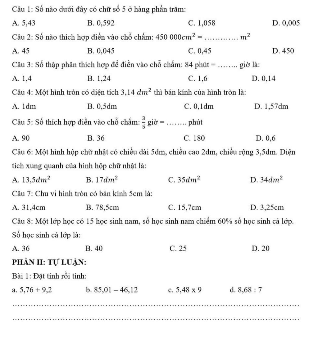 `3/5` giờ = 60 × `3/5` = 36 phút