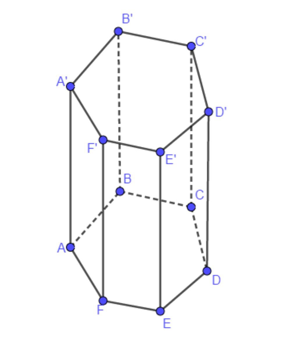 Giả sử có lăng trụ lục giác đều như hình bên đưới.