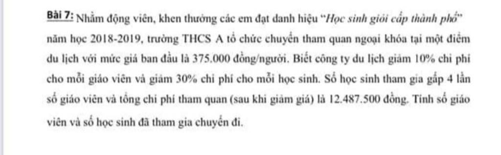 Gọi `x` (giáo viên)là số giáo viên tham gia chuyến đi `(x\in N`*)