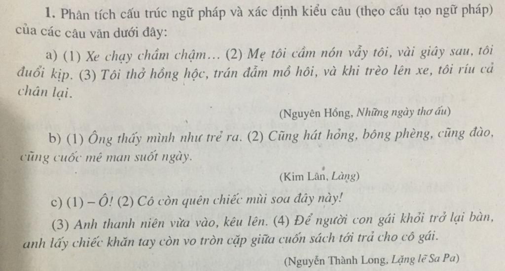 c, $(1)$ – Ô! $(2)$ Cô /còn quên chiếc mùi soa đây này! $(3)$ Anh thanh niên /vừa vào,