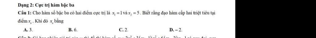 $\quad x_1= 1$ và $x_2= 5$ là hai điểm cực trị của hàm số