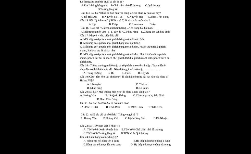 Câu 14: Bài hát "Khúc ca bốn mùa" là sáng tác của nhạc sỹ nào sau đây?