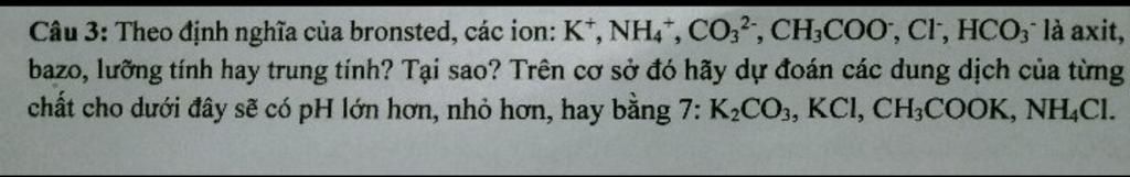 Vậy \(K_2CO_3\) tạo bởi \(K^+\) trung tính và \(CO_3^2-\) có tính bazo nên có tính bazo, nên \(pH>7\)