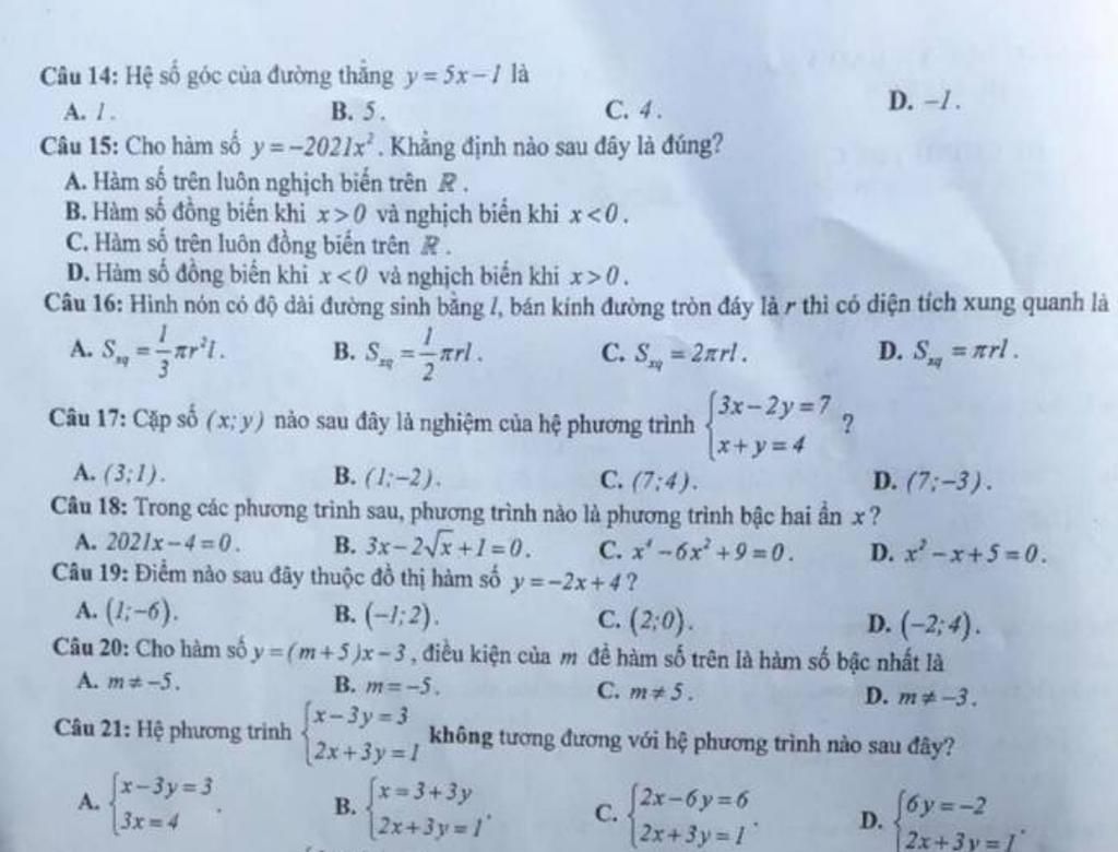 Bấm máy tính hệ phương trình nào ko có nghiệm giống HPT đề bài thì ko tương đương