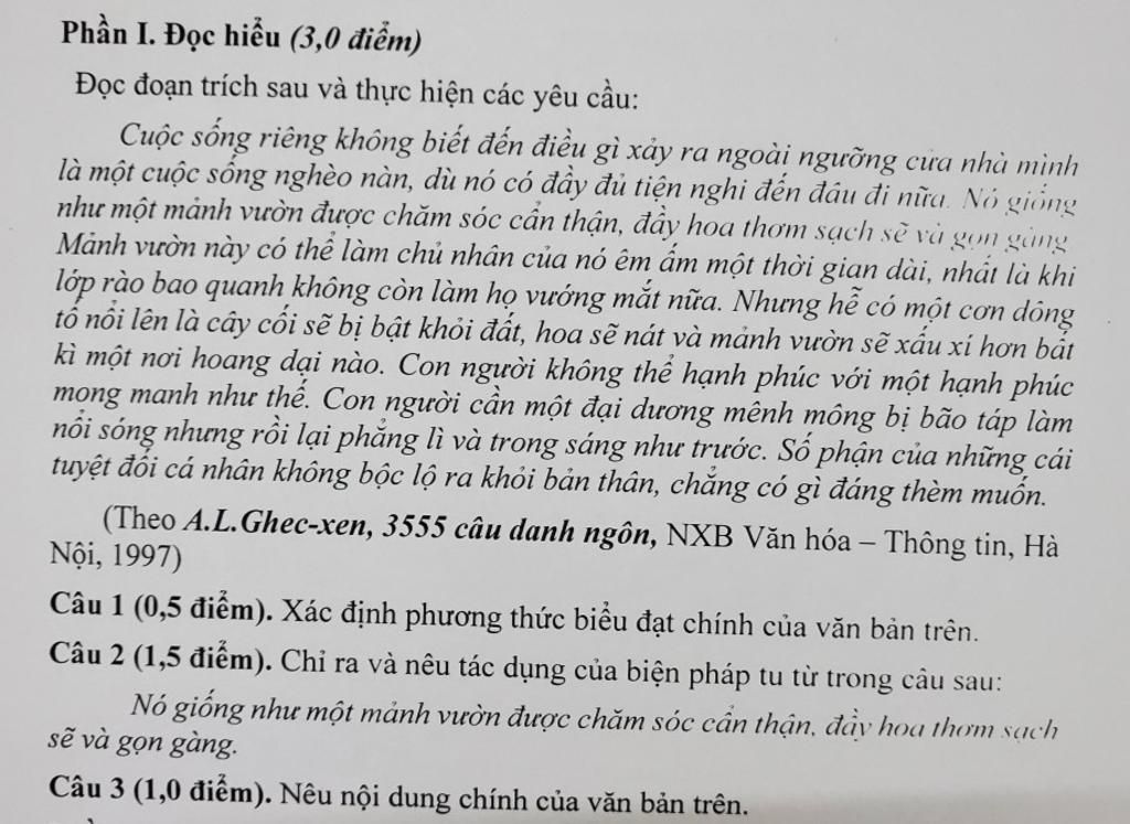 Nội dung chính của văn bản trên: khẳng định cuộc sống riêng không biết đến điều gì xảy ra ở bên ngoài ngưỡng cửa nhà mình là một cuộc sống sai lầm/bác bỏ một quan niệm sống sai lầm: sống bó hẹp trong ngưỡng cửa nhà mình.