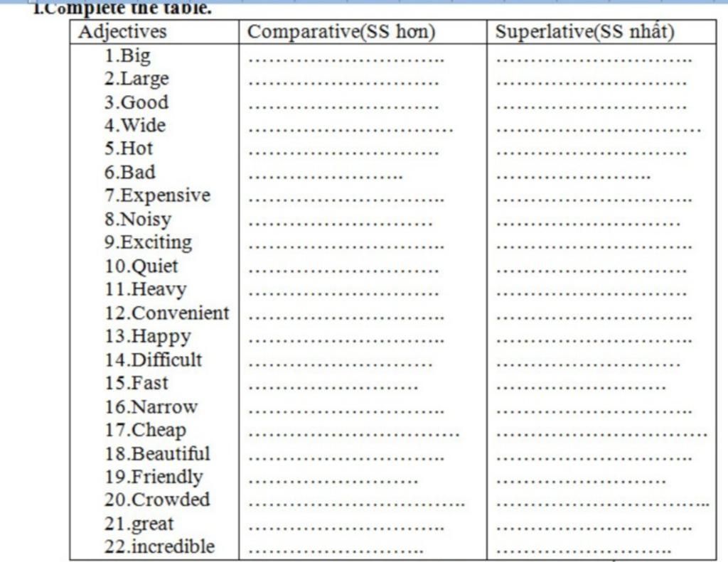 19. friendly: friendlier (hoặc more friendly đều đc); most friendly
