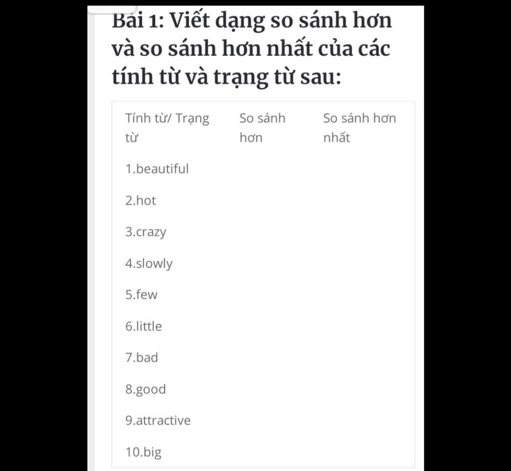 Tính từ/trạng tư=>So sánh hơn=>So sánh hơn nhất