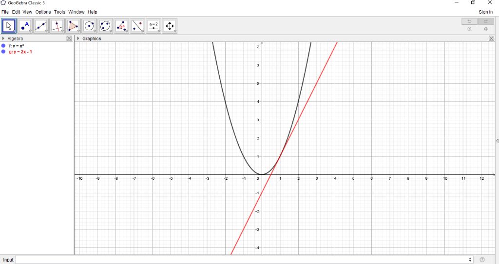 Bước 2: Nhập vào ô input lần lượt là "y=x^2" ; "y=2x-1".