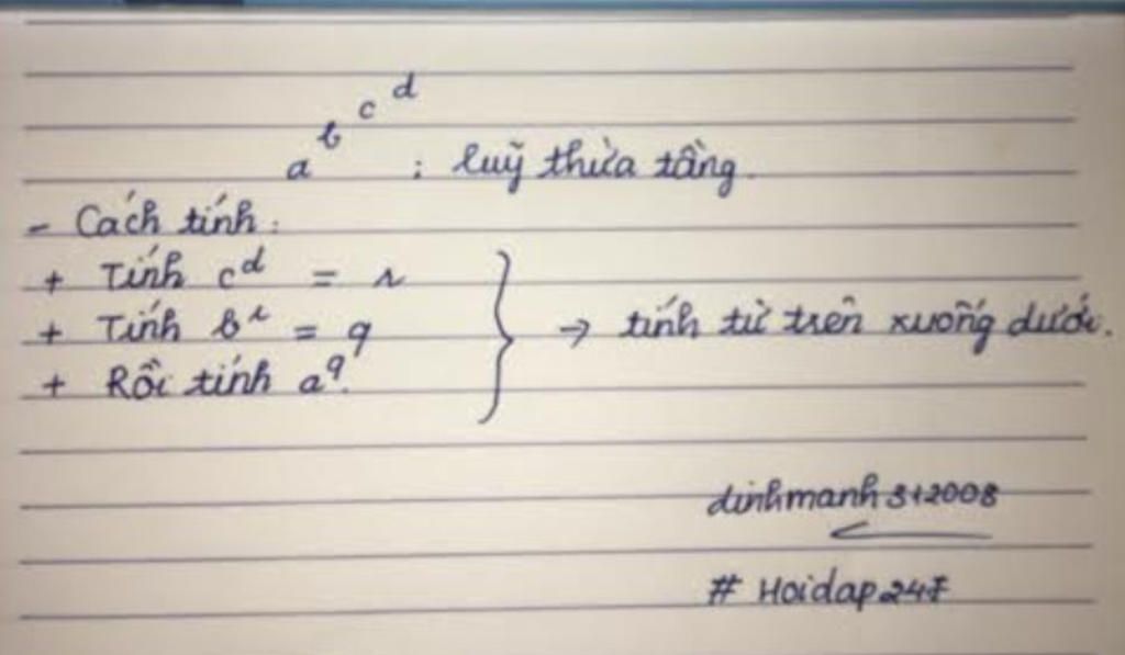 ( x^m)^n= x ^m.n. 9 khi tính một lũy thừa , ta giữ nguyên cơ số và nhân hai số mũ )
