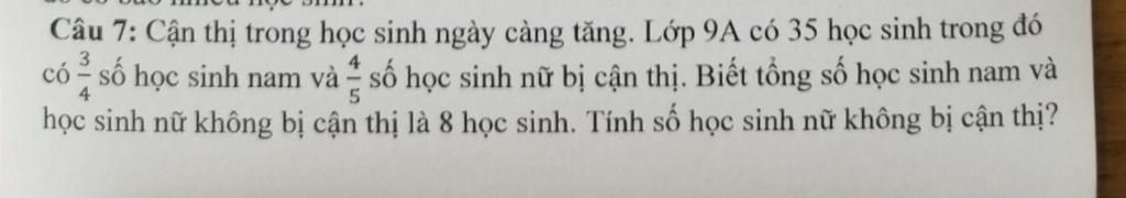 Vậy số học sinh nữ không bị cận thị là: `15-12=3` (học sinh)