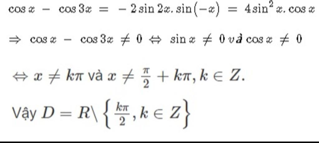 Vậy `D=\mathbb{R} \\ {k\frac{pi}{2}\ (k \in \mathbb{Z})}`