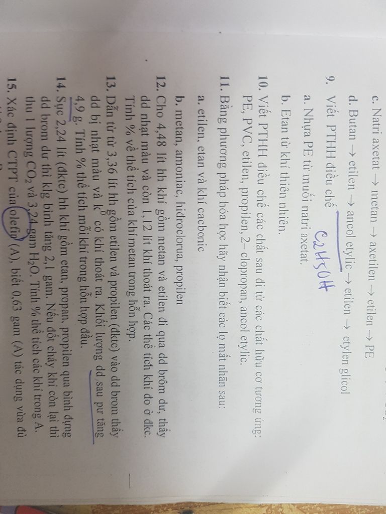 10. Viết PTHH diều chế các chất sau đi từ các chất hữu co tương ứng: