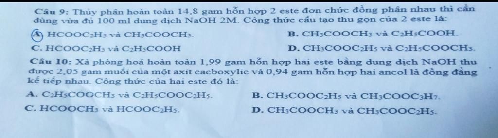 $⇒\overline{n}=3,4⇒\text{hỗn hợp gồm}:C_3H_6O_2;C_4H_8O_2$