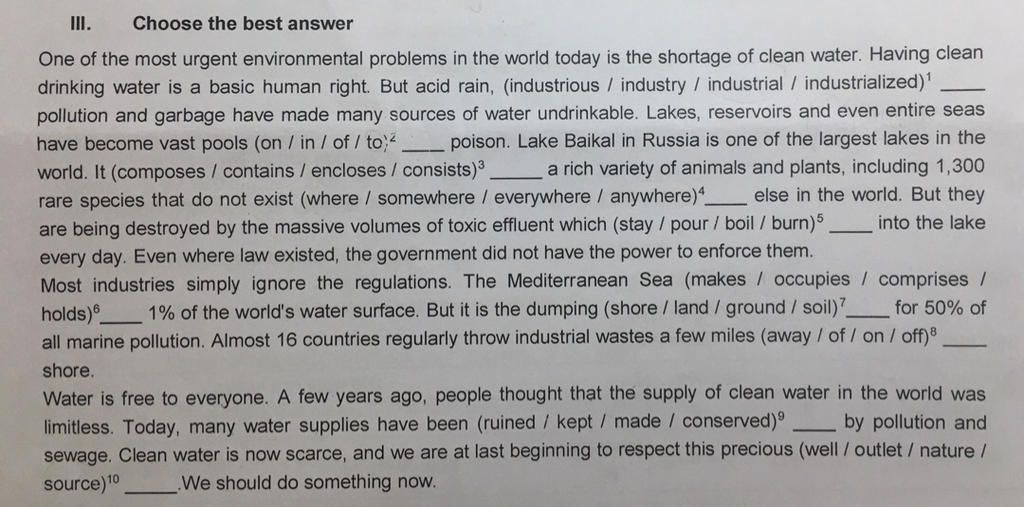 drinking water is a basic human right. But acid rain, (industrious / industry / industrial / industrialized)'