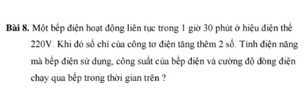 Cường độ dòng điện chạy qua bếp trong thời gian trên là :