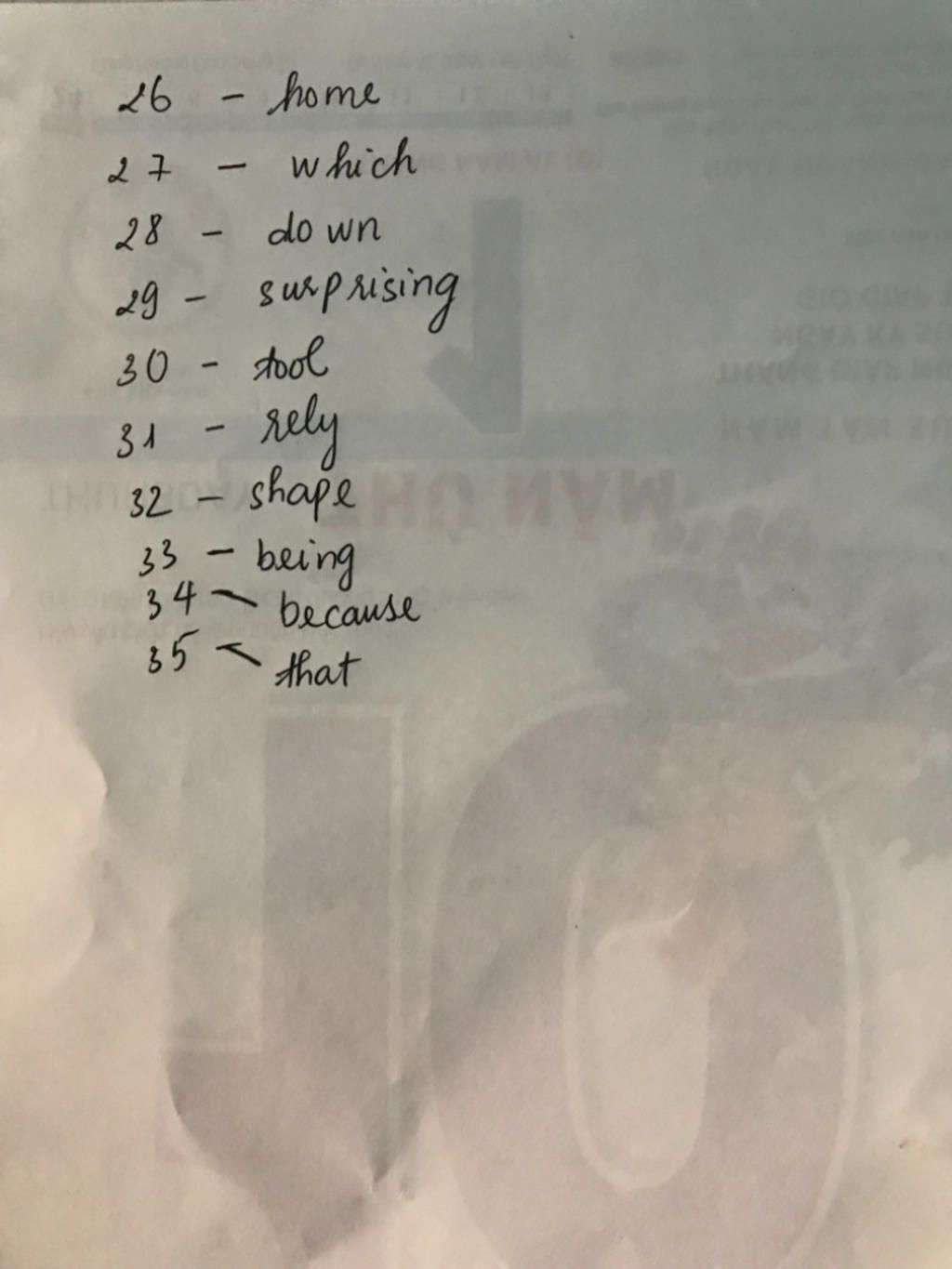 Bạn xem lại đề có thiếu từ không để có đáp án đầy đủ của các câu nhé.