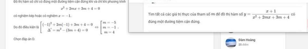 Để hàm số có đúng $1$ tiệm cận đứng