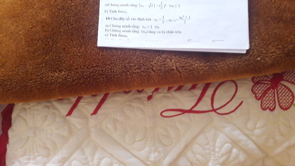 b) Ta có: $u_{n+1}-u_n$=$\frac{u_n^2-2u_n+1}{2}$= $\frac{(u_n-1)^2}{2}≥0$