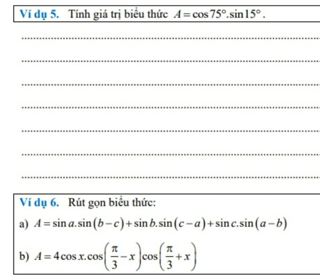 $\begin{array}{l} \cos {75^o}\sin {15^o} = \dfrac{1}{2}\left[ {\sin \left( {{{75}^o} + {{15}^o}} \right) - \sin \left( {{{75}^o} - {{15}^o}} \right)} \right]\\ = \dfrac{1}{2}\left( {\sin {{90}^o} - \sin {{60}^o}} \right) = \dfrac{1}{2}\left( {1 - \dfrac{{\sqrt 3 }}{2}} \right) = \dfrac{{2 - \sqrt 3 }}{4} \end{array}$