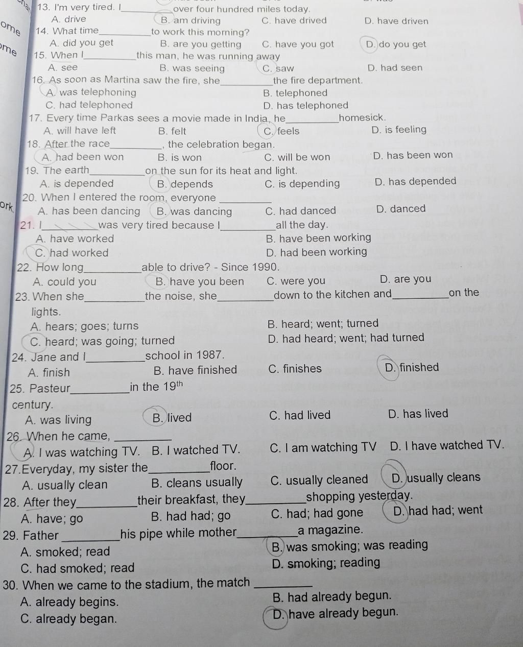 29. B hai hành động song song xảy ra trong quá khứ -> QKTD