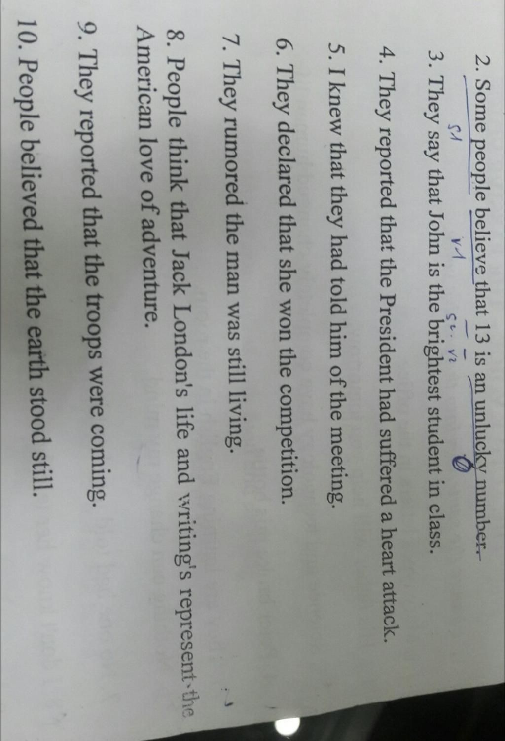 2.Some people believe that 13 is an unlucky number => 13 is believed to be an unlucky number.