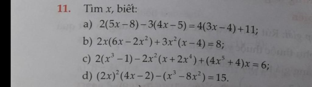 a) 2(5x - 8) - 3.(4x -5) = 4.(3x - 4) + 11