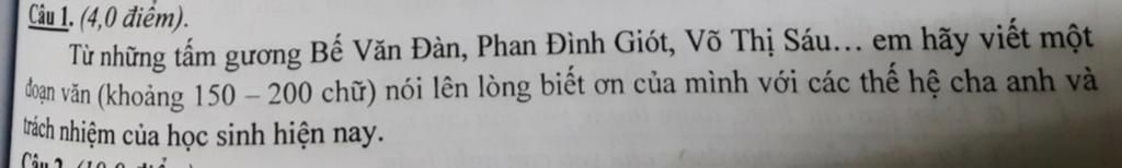 Dân tộc Việt Nam có được hòa bình như ngày hôm nay là nhờ vào công lao của các anh hùng. Biết bao anh hùng đã ngã xuống vì độc lập tự do của nước nhà như anh hùng Bế Văn Đàn, Phan Đình Giót, Võ Thị Sáu,... Bởi vậy, chúng ta cần trân trọng và biết ơn các vị anh hùng dân tộc. Để tỏ lòng biết ơn, mỗi cá nhân cần yêu chuộng hòa bình, trân trọng từng giây từng phút được sống trong độc laaoj, tự do. Nghiêm khắc lên án những hành động bôi nhọ, xuyên tạc hình ảnh thế hệ cha anh đi trước. Đồng thời phải ý thức được trách nhiệm của bản thân với cộng đồng, đất nước. Đối với học sinh chúng ta, trách nhiệm lớn nhất với cộng đồng chính là ra sức học tập, rèn luyện để mai này trở thành công dân tốt, góp phần làm nên sự giàu đẹp, phát triển cho nước nhà.