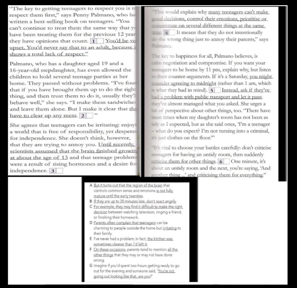 Dẫn chứng: This would explain why many teenagers can't make good decisions, control their emotions, prioritise or concentrate on several different things at the same time