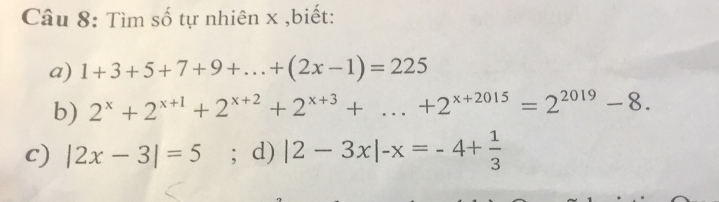 a, 1+3+5+7+...+(2x-1)=225