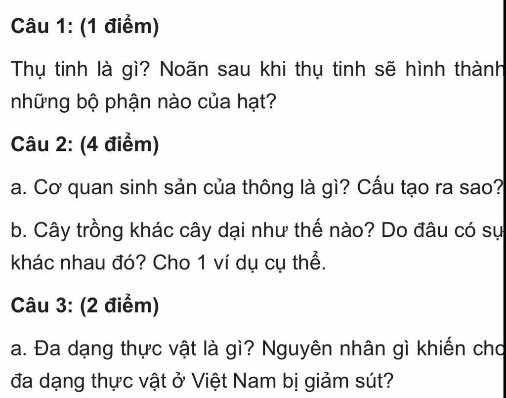 Noãn sau khi thụ tinh sẽ hình thành những bộ phận: