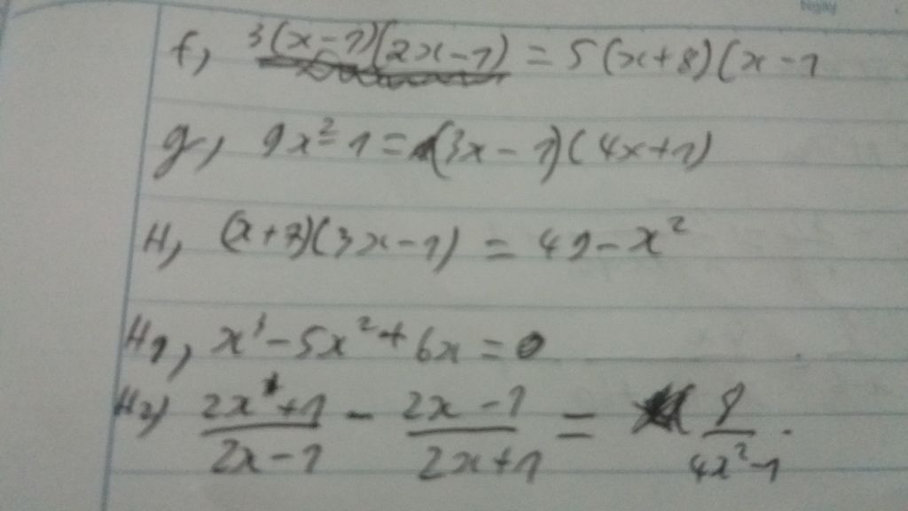e) `\frac{2x+1}{2x-1} - \frac{2x-1}{2x+1} = \frac{8}{4x^2 - 1}` ĐKXĐ: `x\ne1/2 ; x\ne -1/2`