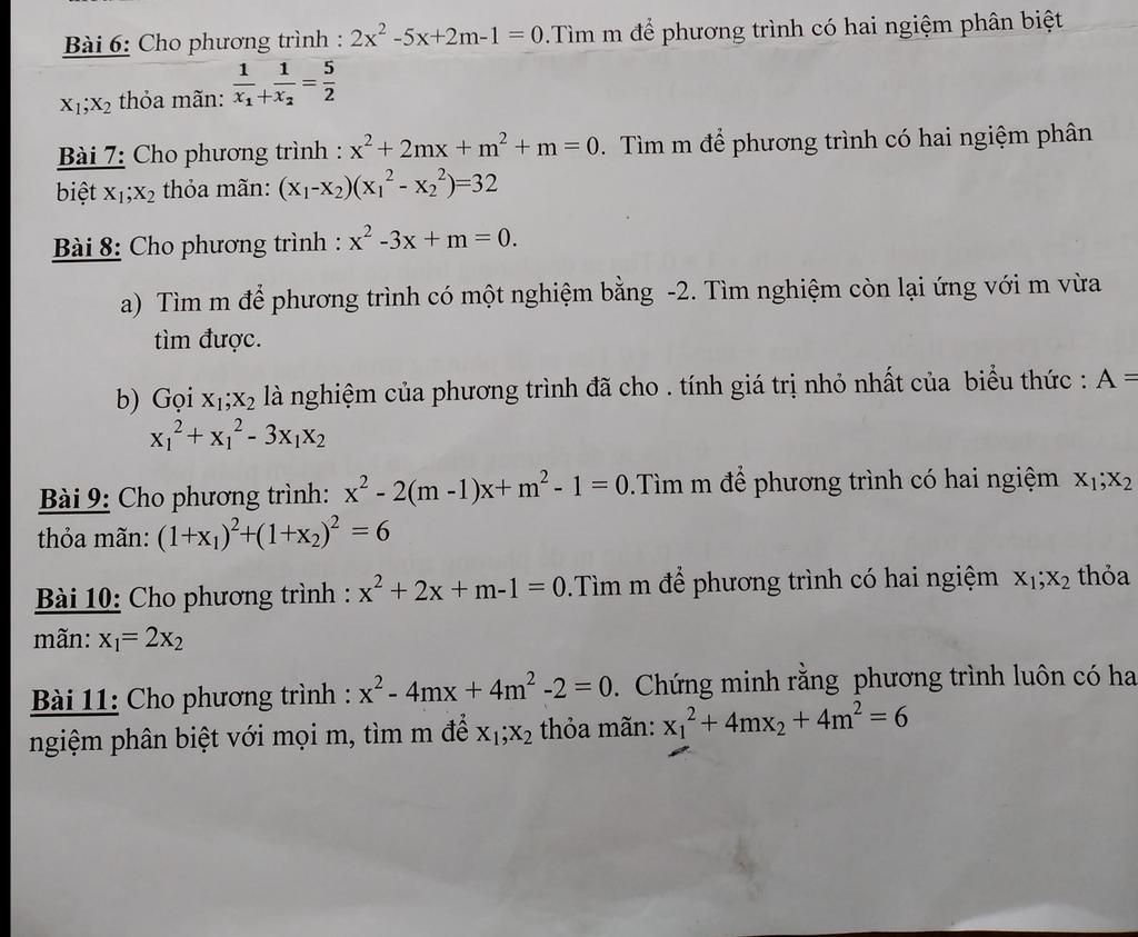 Bài 6: Cho phương trình : 2x -5x+2m-1 0. Tìm m để phương trình có hai ngiệm phân biệt