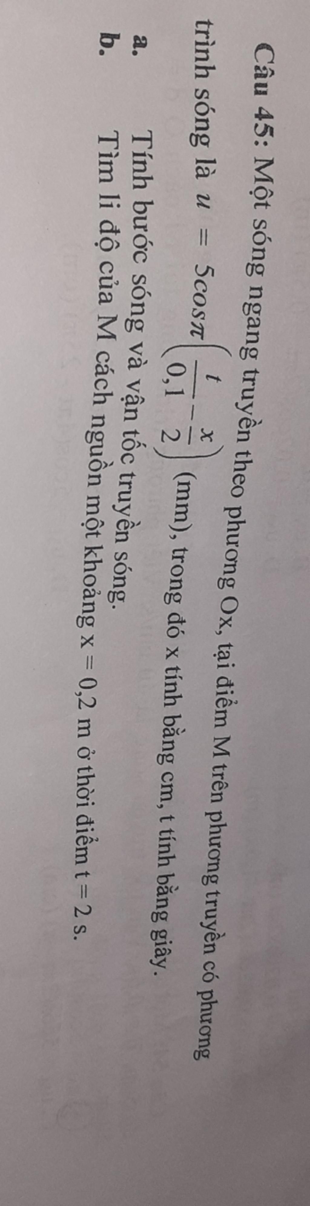 Câu 45: Một sóng ngang truyền theo phương Ox, tại địiểm M trên phương truyền có phương
