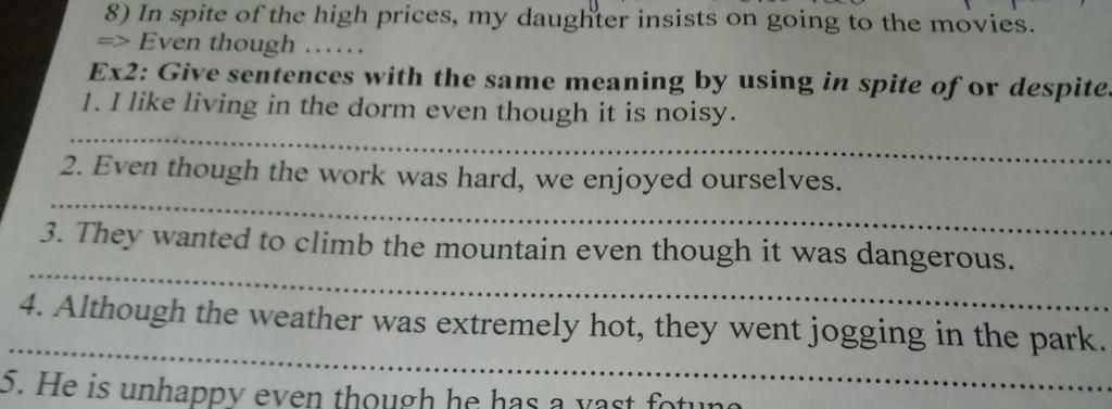 `2` In spite of the hard work, they enjoyed themselves.