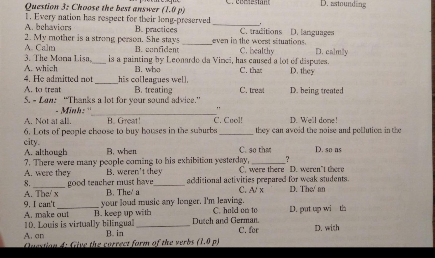 10. B (be bilingual in: biết nói hai ngôn ngữ)