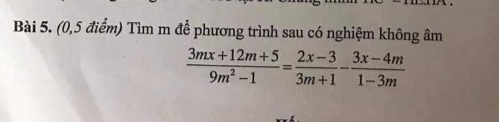 `ĐK: m\ne ±1/3` `(3mx+12m+5)/(9m^2-1)=(2x-3)/(3m+1)-(3x-4m)/(1-3m)`
