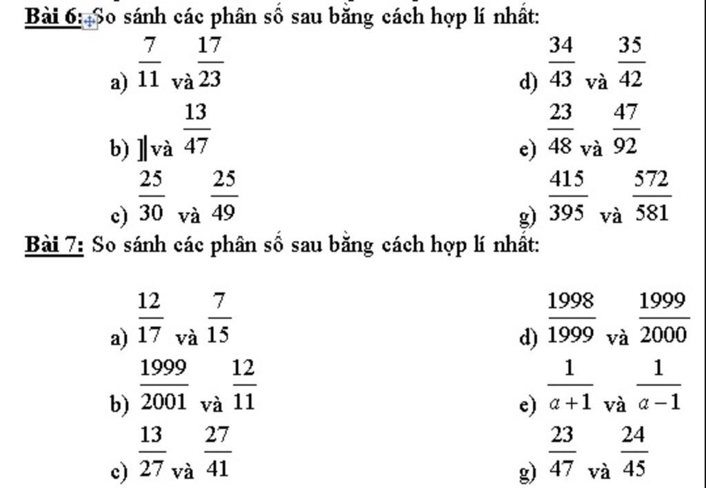 a) Ta so sánh qua phân số trung gian 7/23. Ta có: