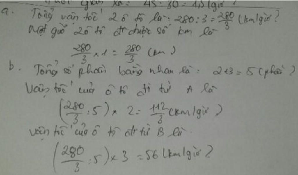 $280 ÷ 3 =$ $\frac{280}{3}$ ( $quãng$ $đường$ )