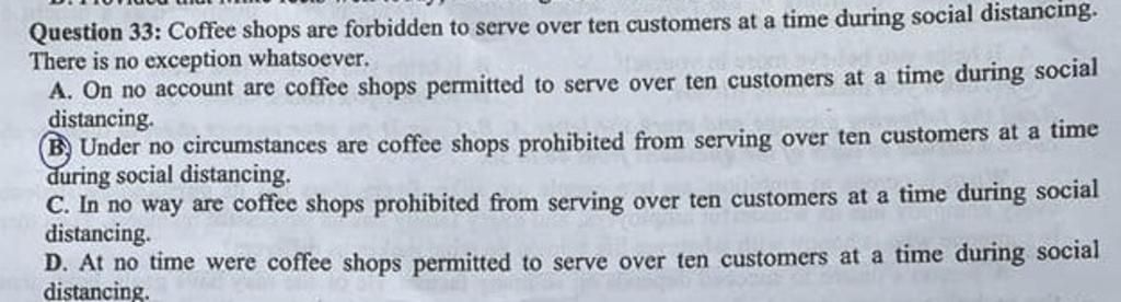 Câu gốc có đoạn : Không có ngoại lệ dù cho thế nào nên cần dùng đảo ngữ với cụm under no circumstances