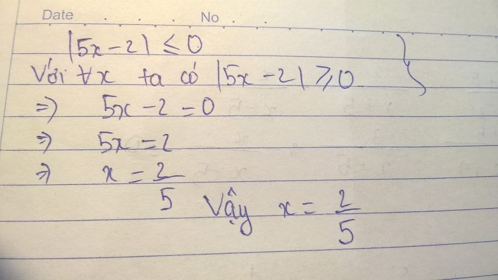 ⇒ Để |5x-2|≤ 0 thì |5x-2|= 0