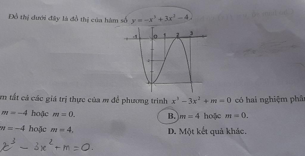 Bạn dựa vào đồ thị hàm số đề cho nha Khi đường thẳng đi qua x=0 và x=-4 thì cắt đồ thị hàm số tại 2 điểm