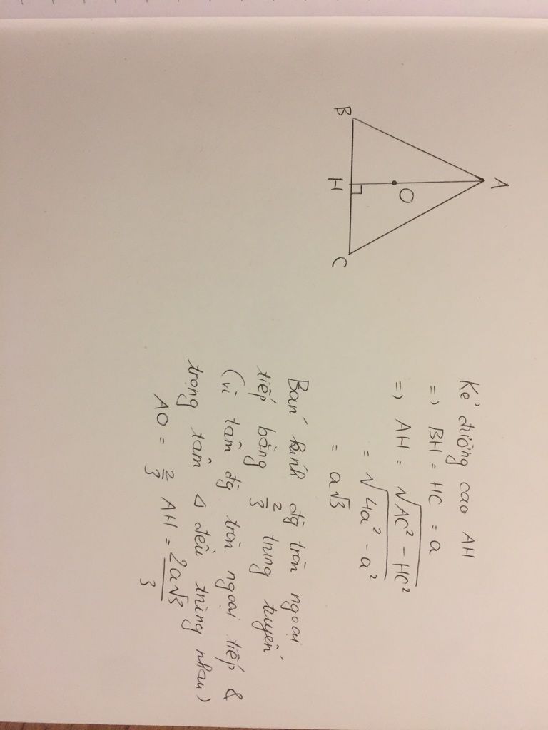 ⇒ Bán kính đường tròn ngoại tiếp là: R= a. $\sqrt[]{3}$.$\frac{2}{3}$
