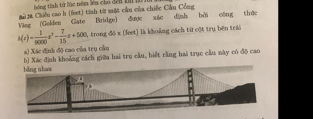 Khi $x=0$, $h(0)$ là độ cao của trụ cầu: